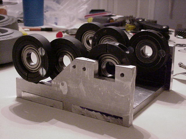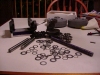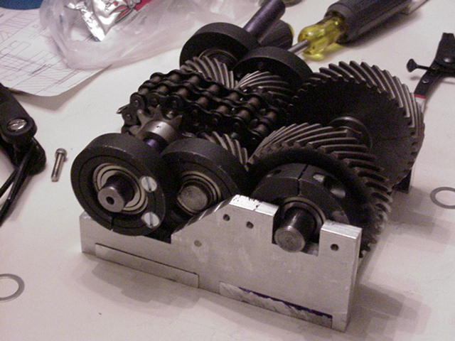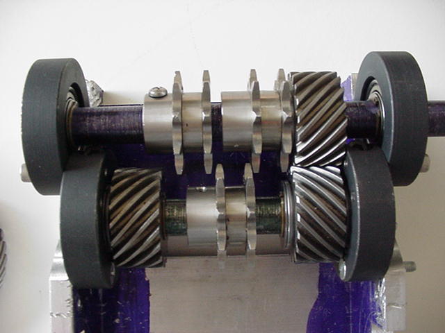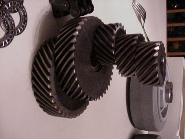 Turkey day break. Recieved gears in the mail , extremely smooth, no matter how little, or much pressure I put on them when meshed (hmmm. Can you think some gears ther that are pressure sensitive? Hint, hint the diff gears.) The drive train frame is quite good looking. (Work of Mark cough...cough...) The first set of bearings are being mounted...along with shaft/gear arrangments. Looking for some good steel shaft stock. It has been confirmed... There has been a sighting of an alive CJ somewhere in Pennsylvania...