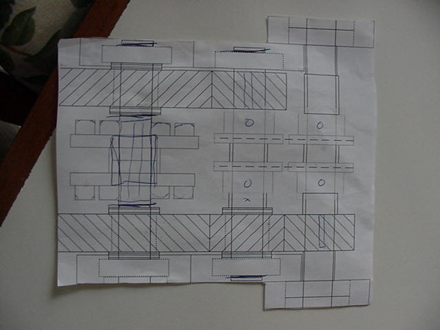 Well, drive train designs will be made by Mark, small sketches all over my schoolwork...music...sigh... One good pelimianry drawing made... Thinking about the use of helical gears.