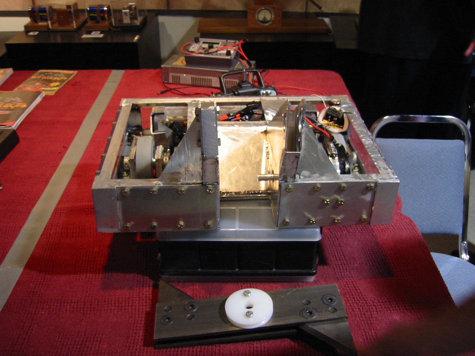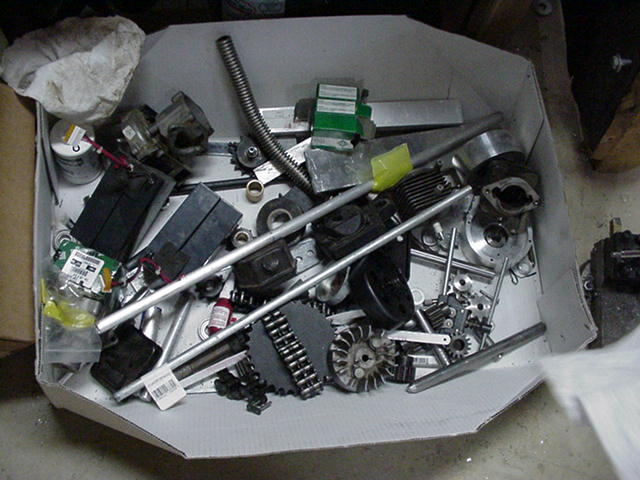 CJ always wanted to make a bot since he saw an episode of RobotWars on BBC while living in England. He got back to the US in Jan 1999. In October 2000, CJ bought a weed eater engine to use for a bot. He then called Mark for the first time in years (knowing he would like the idea, and would be the only other person besides me that knew how to make a bot work) on the phone, asking him if he wanted to help. We talked about the bot for a while, then talked about perpetual motion devices. Later, Mark came over and we looked at, and cleaned, the engine. We talked about making the bot. We both agreed on working together on it, and splitting the cost, work, etc. We talked about BattleBots and discussed ideas about weapons and design. We started to think of a drive train. We went to the junkyard to look around for parts. CJ then started going to Mark's, where we had the tools to make the frame.