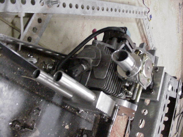 CJ made a mounting plate for the carb, and placed a MCmaster order fo gasket material and long 10-32 screws to hold down a carb assembly that reached higher than the engine head... We figure form extensive research we will pull about four horsepower from it...and be extremely loud...though the engine has not been started to this date (last time it ran was in 1992...)