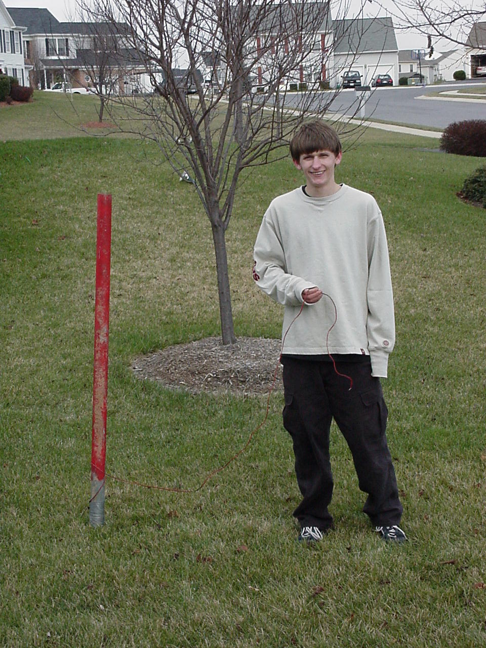 Attempted to start the engion. Back to our trusty tree post. No picture because of darkness. We used a drill for an electric start, and though we got the engine firring the drill chuck limited the rpm of the engion to the top speed of the drill. Couldn't unchuck the drill while the engion was started.